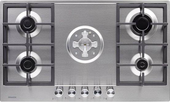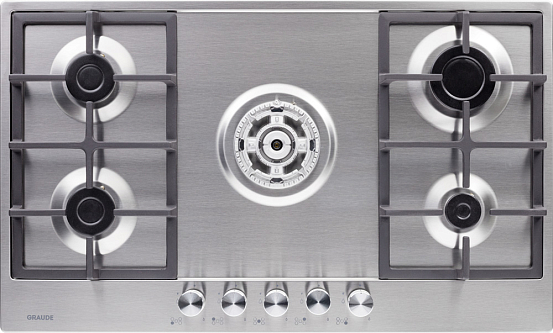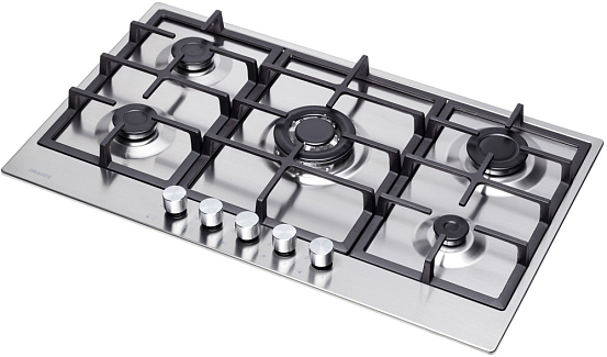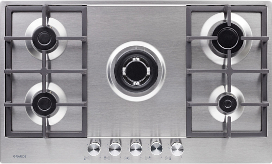 Стильная газовая панель шириной 90 см в черном цвете с 5 конфорками разной мощности, включая WOK. Эмалированная поверхность устойчива к повреждениям, а чугунные решетки надежно удерживают посуду. Автоматический электроподжиг и система «GasControl» обеспечивают безопасность и комфорт.