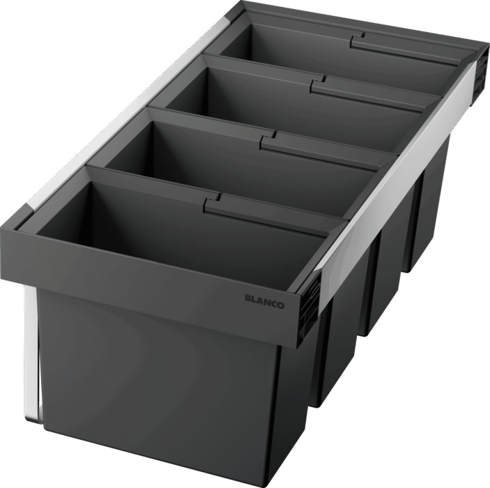 Система сортировки отходов FLEXON II Low 90/4 от Blanco воплощает философию бескомпромиссного качества, инновационного дизайна и функциональности, превращая самое активное место на кухне в продуманный, эргономичный и эстетичный центр для приготовления пищи.