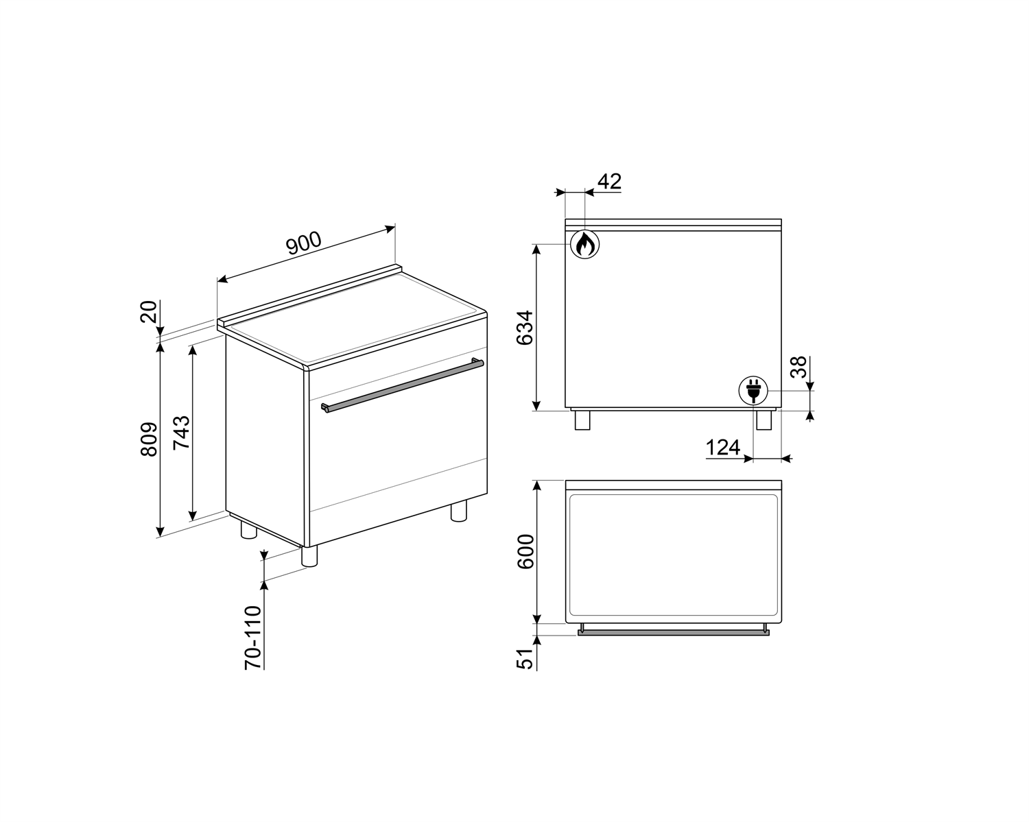 Отдельностоящий варочный центр C95GMCMB2 Smeg черный матовый