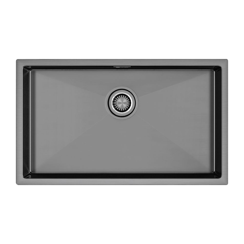 PVD покрытие в цветах воронёная сталь / брашированное золото (GM / BG) на внешней поверхности мойки для кухни ALLER 74 UNI – это особый метод напыления, путём прямой конденсации пара наносимого материала, который позволяет поверхности мойки быть особенно устойчивой к появлению царапин и истиранию. Такое покрытие является не только декоративным, но и защитным слоем, оно плотно и равномерно прилегает к основе, не содержит микротрещин.